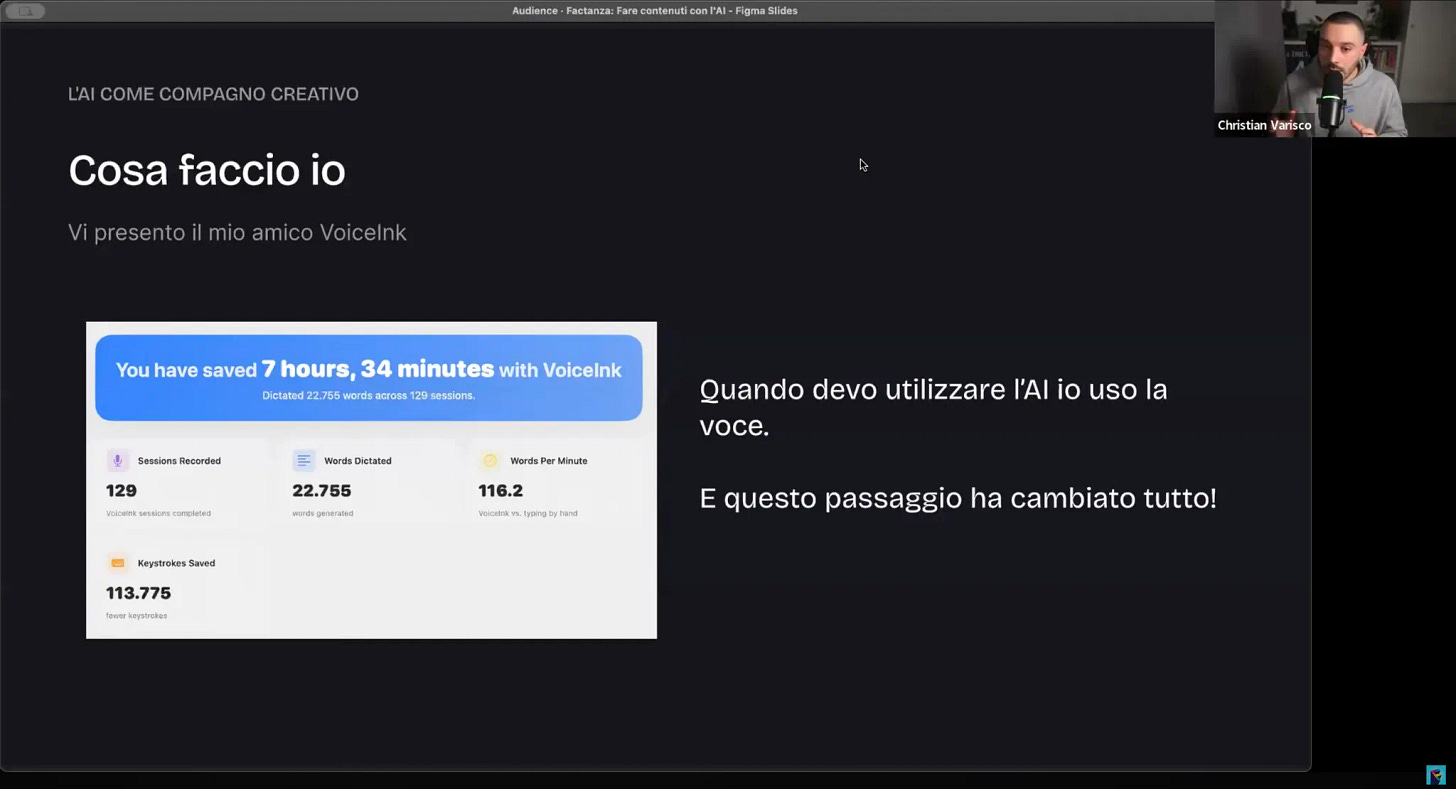 A questo aggiungo le interviste e i workshop che ho fatto durante l’anno. Uno in particolare: con Factanza Academy, dove ho raccontato come uso l’intelligenza artificiale per creare contenuti. Uscire dalla mia bolla e parlare a pubblici differenti è stato parte dell’investimento.